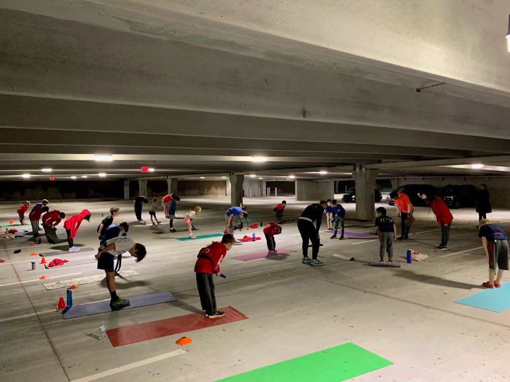 TKD in the parking deck. We are showing respect at the end of class.